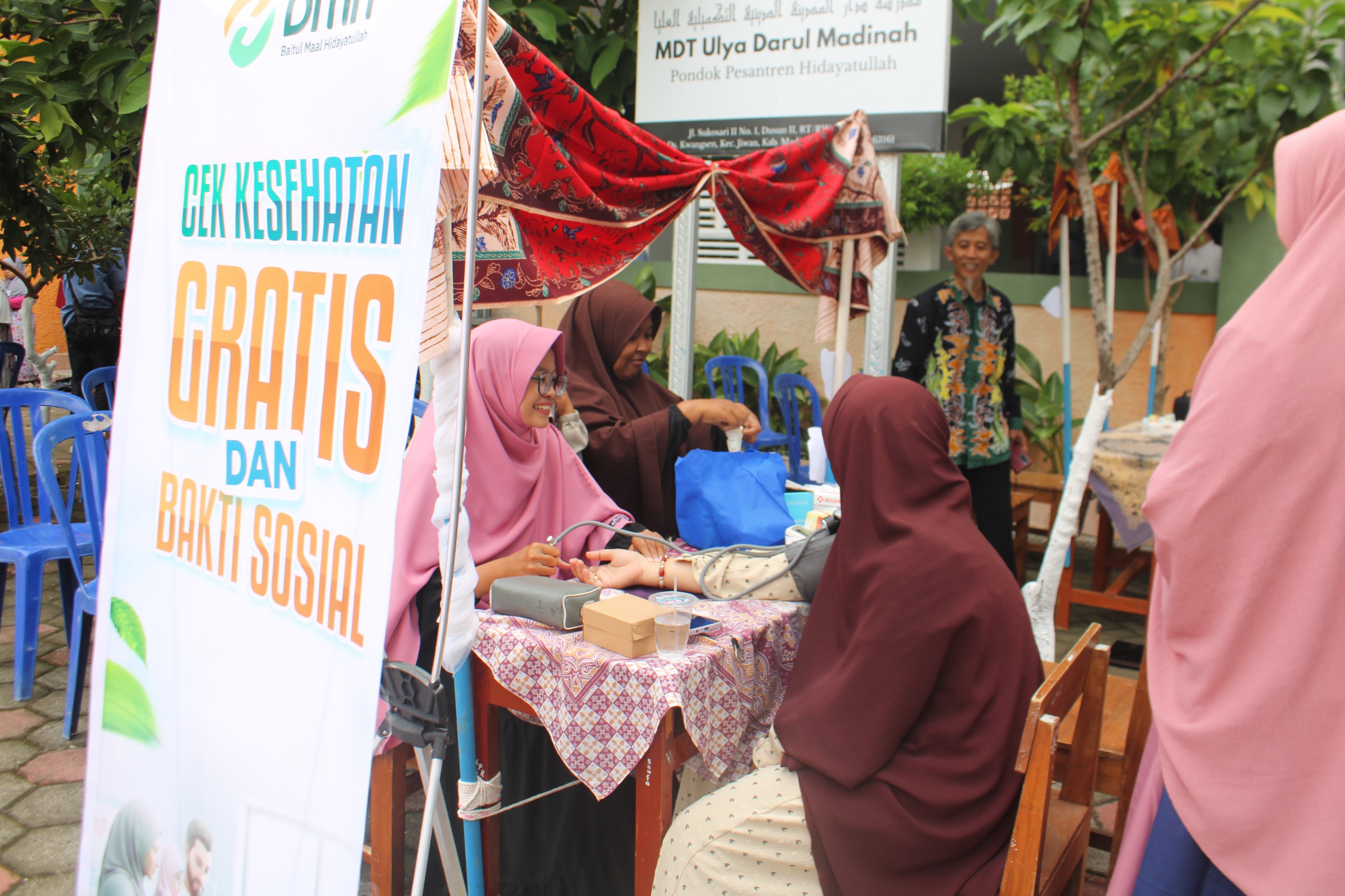 Lembaga Amil Zakat Baitul Maal Hidayatullah (BMH) turut ambil bagian dengan mendistribusikan paket sembako bagi warga yang membutuhkan. Selain itu, aspek kesehatan tak luput dari perhatian melalui layanan cek kesehatan gratis dan terapi Ceragem yang banyak diminati kaum lansia. Kemandirian santri juga ditonjolkan melalui Bazar Santri MA Darul Madinah.